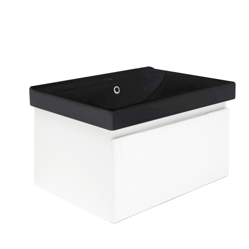 Závesná kúpeľňová skrinka s keramickým umývadlom v bielej farbe s matným povrchom o rozmere 58x30x45 cm. Povrch v prevedení fólie.