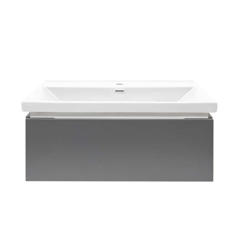 Závesná kúpeľňová skrinka s keramickým umývadlom v antracitovej farbe s matným povrchom o rozmere 80x30x44,8 cm. Povrch v prevedení lamino.