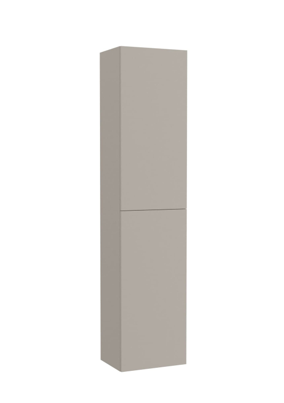 Závesná kúpeľňová skrinka vysoká v pieskovom prevedení s matným povrchom o rozmere 40x175x30 cm. Povrch v prevedení lamino. Push otváranie s doťahom. Dvierka majú ľavé aj pravé otváranie.