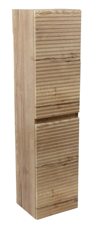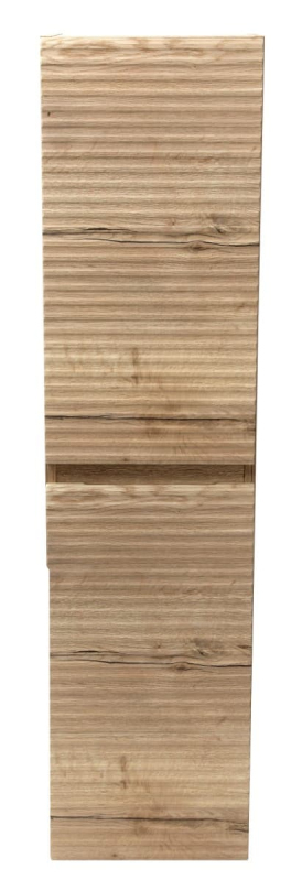 Závesná kúpeľňová skrinka vysoká v dekore dub halifax s matným povrchom o rozmere 36x145x31,8 cm. Povrch v prevedení fólie. S košom na bielizeň. Dvierka majú ľavé aj pravé otváranie.