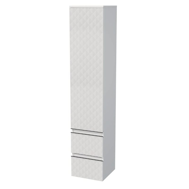 Závesná kúpeľňová skrinka vysoká v bielej farbe s matným povrchom o rozmere 32,5x163x33 cm. Povrch v prevedení lamino.