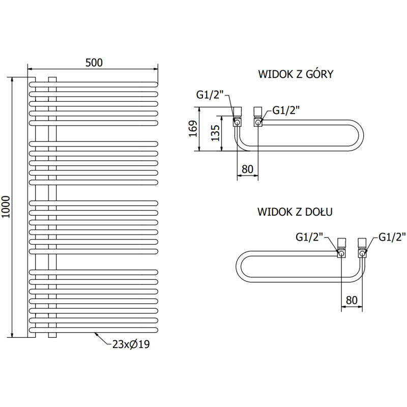 Technické údaje: Výška: 1000 mm Šírka: 500 mm Hĺbka: 135 mm Rozstup pripojenia: 8 cm Farba: Biela RAL 9016 Materiál: Oceľ Hmotnosť: 13,91 kg Reakcia na oheň: A1 Prevádzková teplota: max. 95 °C Maximálny prevádzkový tlak: 5 °C - 809 W Pripojenie: - 4xG ½″ zhora a zdola na pravej alebo ľavej strane Možnosť inštalácie výhrevného telesa Vysoko kvalitný, odolný, nehrdzavejúci náter Sada obsahuje: zavesenie, montážnu sadu, záslepky a odvzdušňovací otvor