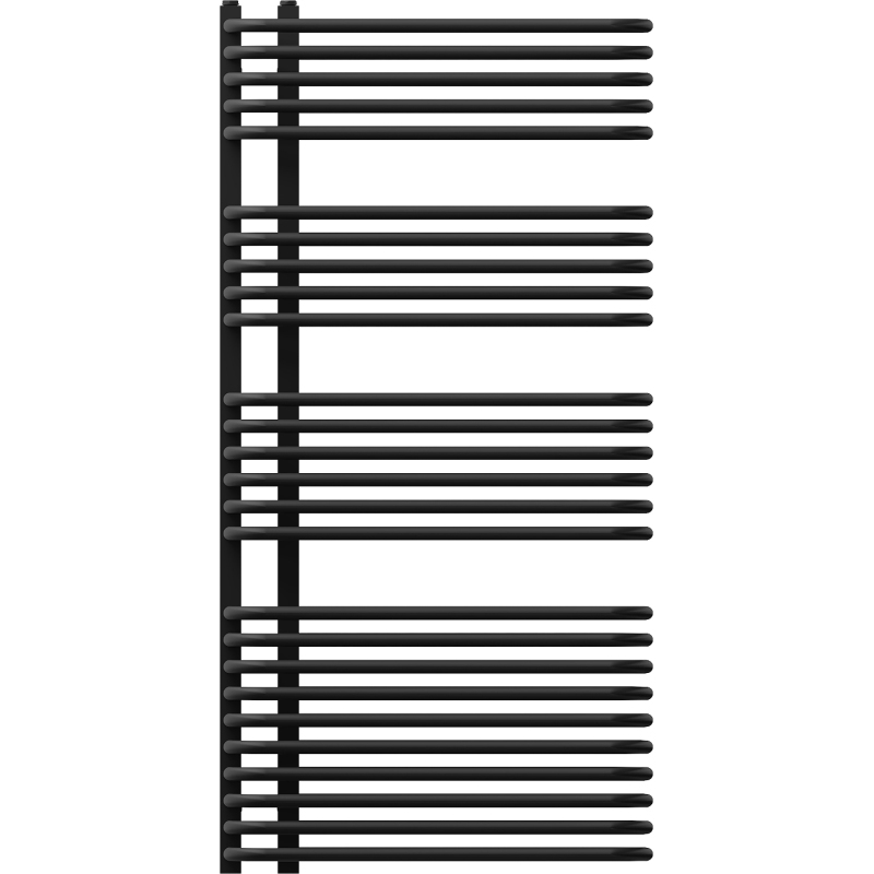 Technické údaje: Výška: 1200 mm Šírka: 600 mm Hĺbka: 135 mm Rozstup pripojenia: 8 cm Farba: Čierna RAL 9005 Materiál: Oceľ Hmotnosť: 17,08 kg Reakcia na oheň: A1 Prevádzková teplota: max. 95 °C Maximálny prevádzkový tlak: 0 °C - 1083 W Pripojenie: - 4xG ½″ zhora a zdola na pravej alebo ľavej strane Možnosť inštalácie výhrevného telesa Vysoko kvalitný, odolný náter odolný proti korózii Sada obsahuje: závesy, montážnu sadu, záslepky a odvzdušňovací otvor