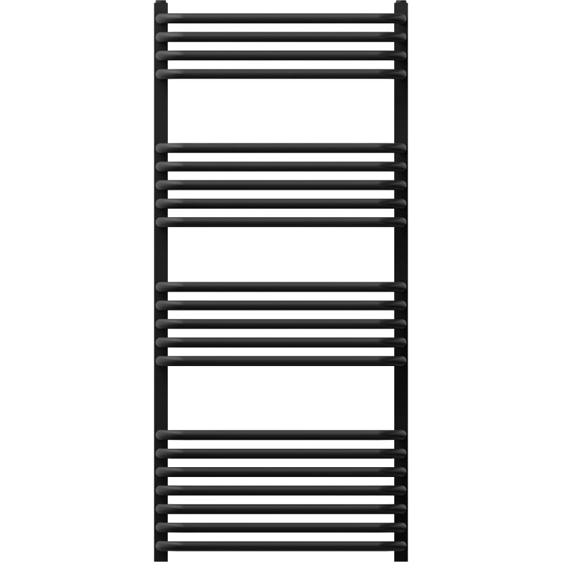 Technické údaje: Výška: 1210 mm Šírka: 550 mm Hĺbka: 150 mm Rozstup pripojenia: 52 cm Farba: Čierna RAL 9005 Materiál: Oceľ Hmotnosť: 11,45 kg Reakcia na oheň: A1 Prevádzková teplota: max. 95 °C Maximálny prevádzkový tlak: 5 °C - 641 W Pripojenie: - 4xG ½″ zhora a zdola na pravej alebo ľavej strane Možnosť inštalácie výhrevného telesa Vysoko kvalitný, odolný, nehrdzavejúci náter Sada obsahuje: zavesenie, montážnu sadu, záslepky a odvzdušňovací otvor