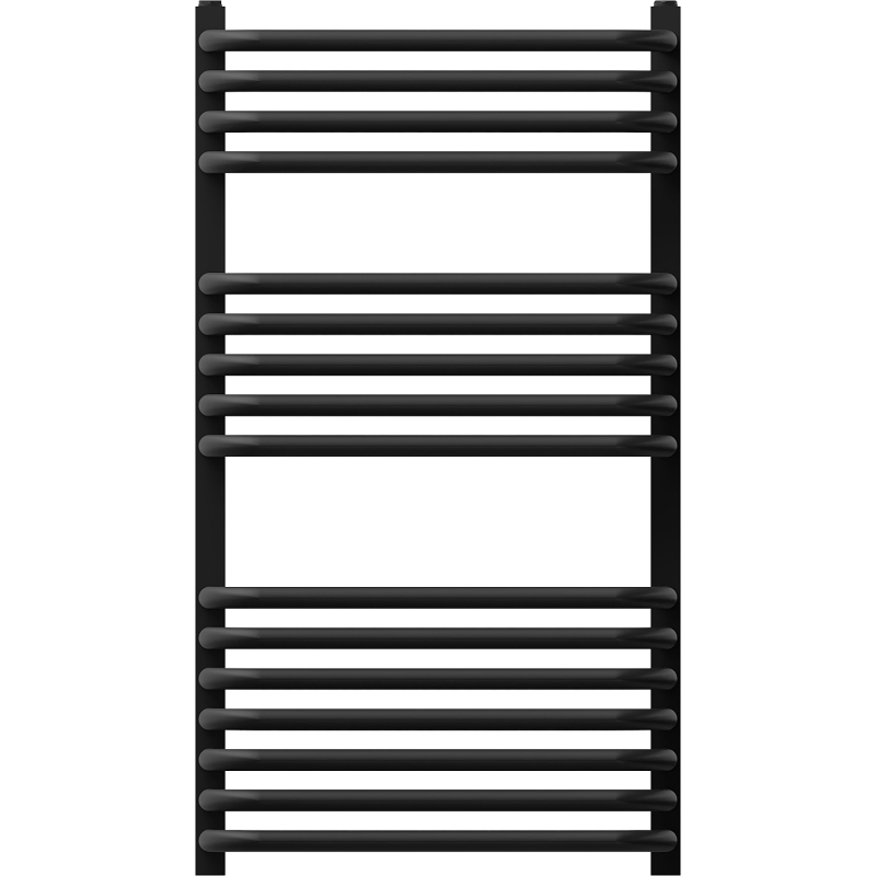 Technické údaje: Výška: 860 mm Šírka: 450 mm Hĺbka: 150 mm Rozstup pripojenia: 42 cm Farba: Čierna RAL 9005 Materiál: Oceľ Hmotnosť: 7,07 kg Reakcia na oheň: A1 Prevádzková teplota: max. 95 °C Maximálny prevádzkový tlak: 0,0 - 424 W Pripojenie: - 4xG ½″ zhora a zdola na pravej alebo ľavej strane Možnosť inštalácie výhrevného telesa Vysoko kvalitný, odolný, nehrdzavejúci náter Sada obsahuje: zavesenie, montážnu sadu, záslepky a odvzdušňovací otvor
