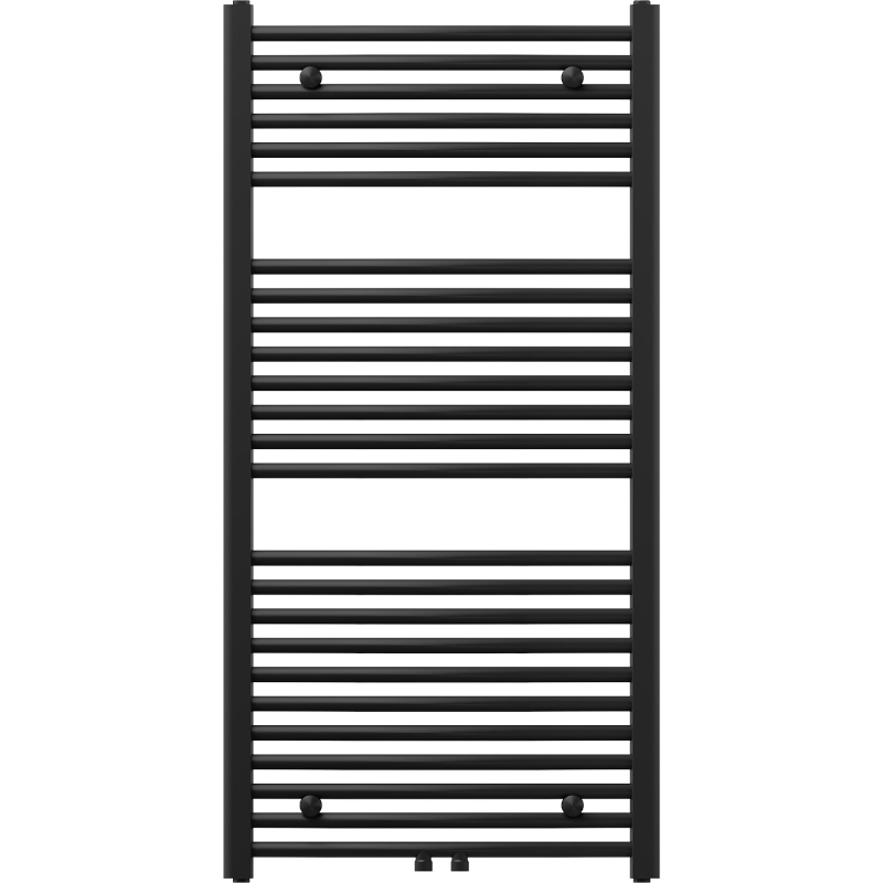Technické údaje: Výška: 1200 mm Šírka: 600 mm Hĺbka: 56 mm Rozstup pripojenia: - 55 cm (dole) alebo 5 cm (uprostred) Farba: Čierna RAL 9005 Materiál: Oceľ Hmotnosť: 9,54 kg Reakcia na oheň: A9 Prevádzková teplota: Maximálna max. výkon: - 75/65/20 °C - 620 W Pripojenie: - 2xG ½″ uprostred - 4xG ½″ zhora a zdola na pravej alebo ľavej strane Možnosť inštalácie výhrevného telesa Vysoko kvalitný, odolný, nehrdzavejúci náter Sada obsahuje: zavesenie, montážnu sadu, záslepky