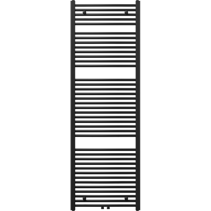 Technické údaje: Výška: 1800 mm Šírka: 600 mm Hĺbka: 56 mm Rozstup pripojenia: - 55 cm (dole) alebo 5 cm (uprostred) Farba: Čierna RAL 9005 Materiál: Oceľ Hmotnosť: 14,47 kg Reakcia na oheň: A0 Prevádzková teplota: 0 max. výkon: - 75/65/20 °C - 958 W Pripojenie: - 2xG ½″ uprostred - 4xG ½″ zhora a zdola na pravej alebo ľavej strane Možnosť inštalácie kúrenia Vysoko kvalitný, odolný, nehrdzavejúci náter Sada obsahuje: zavesenie, montážnu sadu, záslepky