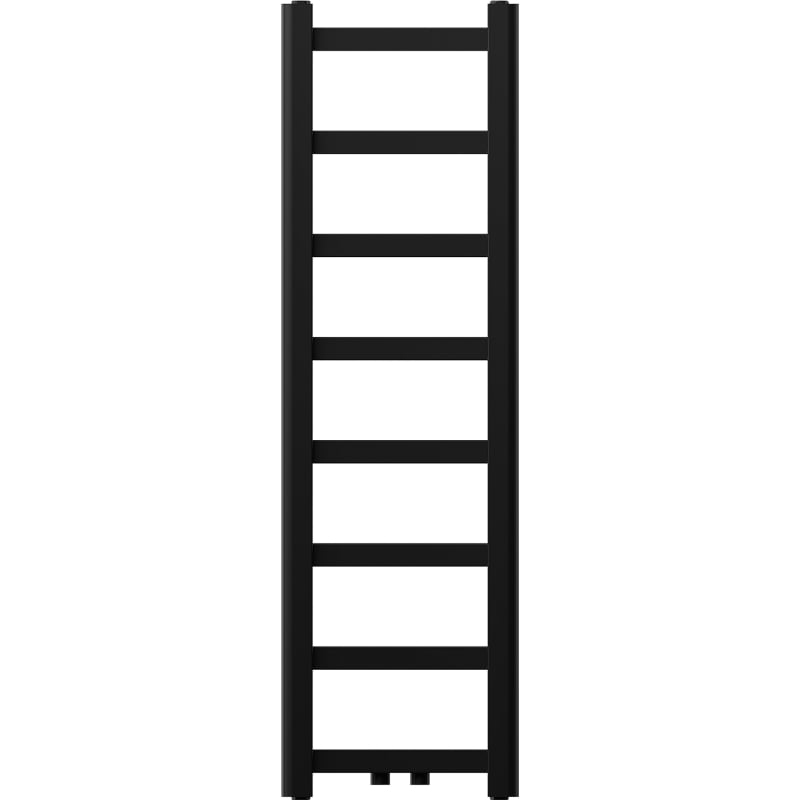 Technické údaje: Výška: 1000 mm Šírka: 300 mm Hĺbka: 40 mm Rozstup pripojenia: - 25 cm (dole) alebo 5 cm (uprostred) Farba: Čierna RAL 9005 Materiál: Oceľ Hmotnosť: 4,22 kg Reakcia na oheň: A9 Prevádzková teplota: Maximálna max. výkon: - 75/65/20 °C - 197 W Pripojenie: - 2xG ½″ uprostred - 4xG ½″ zhora a zdola na pravej alebo ľavej strane Možnosť inštalácie výhrevného telesa Vysoko kvalitný, odolný, nehrdzavejúci náter Sada obsahuje: zavesenie, montážnu sadu, záslepky