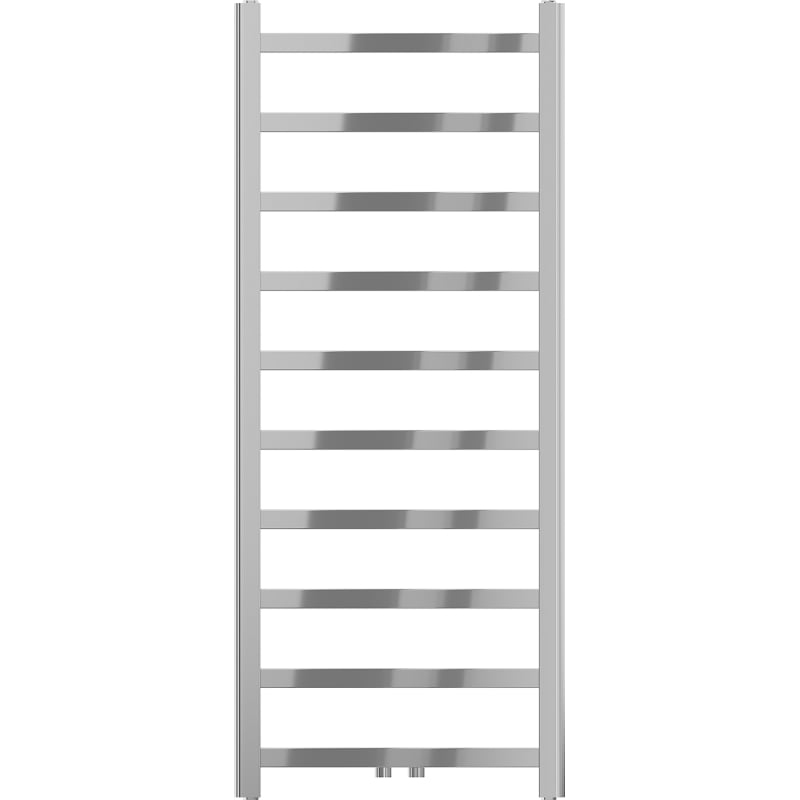Technické údaje: Výška: 1200 mm Šírka: 500 mm Hĺbka: 40 mm Rozstup pripojenia: - 45 cm (dole) alebo 5 cm (uprostred) Farba: Chróm Materiál: Oceľ Hmotnosť: 6,39 kg Reakcia na oheň: A1 Prevádzková teplota: max. 95 °C Maximálny 75/65/20 °C - 251 W Pripojenie: - 2xG ½″ uprostred - 4xG ½″ zhora a zdola na pravej alebo ľavej strane Možnosť inštalácie výhrevného telesa Vysoko kvalitný, odolný náter odolný proti korózii Sada obsahuje: závesy, montážnu sadu, záslepky a odvzduš