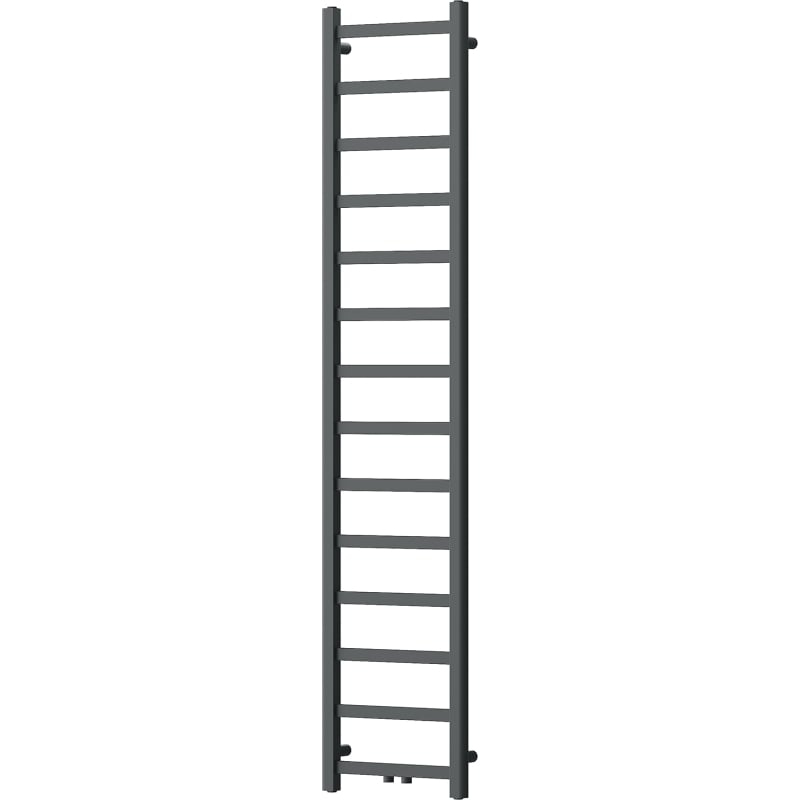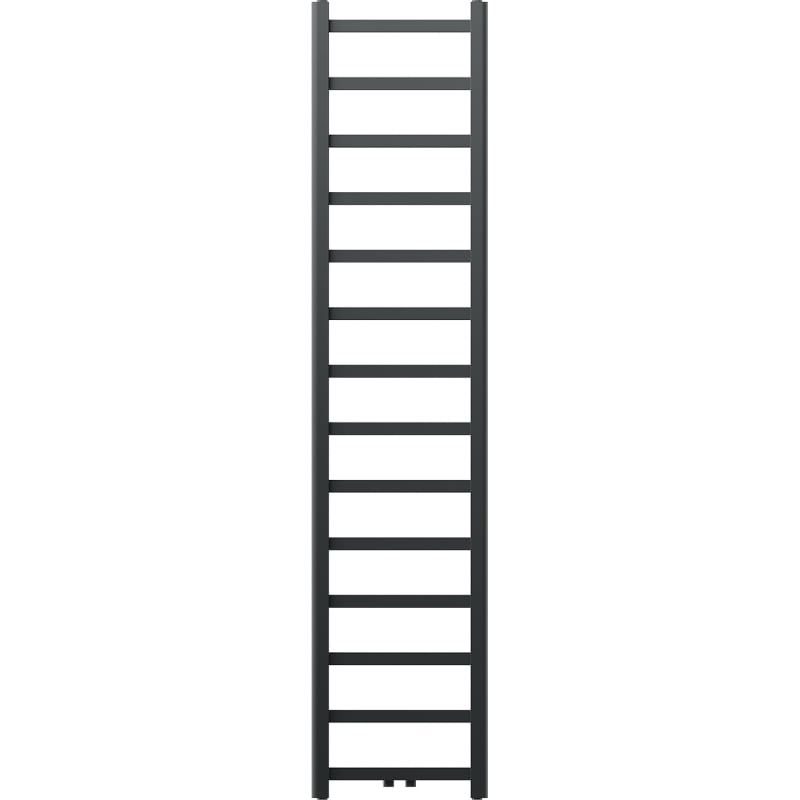 Technické údaje: Výška: 1800 mm Šírka: 400 mm Hĺbka: 40 mm Rozstup pripojenia: - 35 cm (dole) alebo 5 cm (uprostred) Farba: Antracitová RAL 7016 Materiál: Oceľ Hmotnosť: 8,20 kg Reakcia na oheň: A0 Prevádzková teplota: 1 prevádzková teplota: max Vykurovací výkon: - 75/65/20 °C - 406 W Pripojenie: - 2xG ½″ uprostred - 4xG ½″ zhora a zdola na pravej alebo ľavej strane Možnosť inštalácie výhrevného telesa Vysoko kvalitný, odolný, nehrdzavejúci náter Sada obsahuje: zavesenie, montážnu sadu,