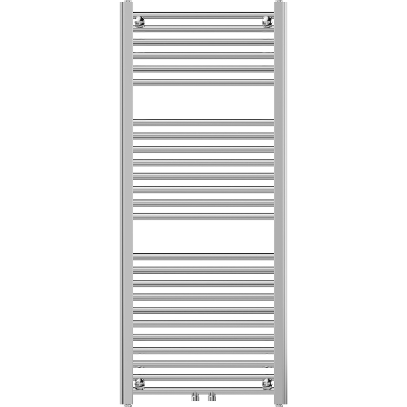 Technické údaje: Výška: 1200 mm Šírka: 500 mm Hĺbka: 30 mm Rozstup pripojenia: - 45 cm (dole) alebo 5 cm (uprostred) Farba: Chróm Materiál: Oceľ Hmotnosť: 8,23 kg Reakcia na oheň: A1 Prevádzková teplota: max. 95 °C Maximálny 75/65/20 °C - 417 W Pripojenie: - 2xG ½″ uprostred - 4xG ½″ zhora a zdola na pravej alebo ľavej strane Možnosť inštalácie výhrevného telesa Vysoko kvalitný, odolný náter odolný proti korózii Sada obsahuje: závesy, montážnu sadu, záslepky a odvzduš