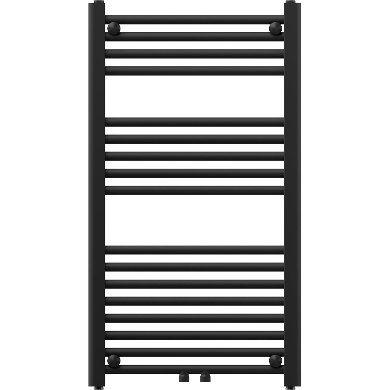 Technické údaje: Výška: 900 mm Šírka: 500 mm Hĺbka: 30 mm Rozstup pripojenia: - 45 cm (dole) alebo 5 cm (uprostred) Farba: Čierna RAL 9005 Materiál: Oceľ Hmotnosť: 5,94 kg Reakcia na oheň: A1 Prevádzková teplota: Maximálny 9, max. - 75/65/20 °C - 370 W Pripojenie: - 2xG ½″ uprostred - 4xG ½″ zhora a zdola na pravej alebo ľavej strane Možnosť inštalácie výhrevného telesa Vysoko kvalitný, odolný, nehrdzavejúci náter Sada obsahuje: zavesenie, montážnu sadu, záslepky