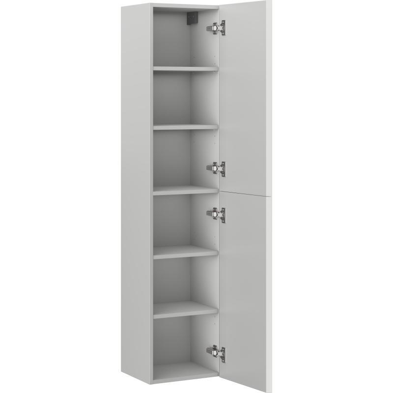Špecifikácia produktu: Šírka: 35 cm Výška: 160 cm Hĺbka: 30 cm Farba korpusu: Matne šedá Materiál korpusu: Lakovaná doska Farba čela: Matne šedá Materiál čela: Lakovaná MDF doska Konštrukcia čela: Hladká Počet dvierok: 2 5 políc (1 pevná tlmeného dovierania Univerzálna montáž dvierok (ľavé/pravé) Povrch odolný voči UV žiareniu Zmontovaný produkt