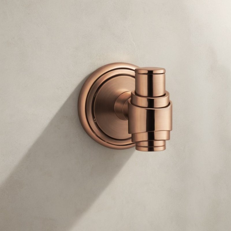 Praktický a elegantný kúpeľňový vešiak vo farbe kartáčovanej medi je funkčným prvkom vybavenia, ktorý sa hodí ako do moderných, tak aj do klasických interiérov. Vyrobený je z vysoko kvalitnej ocele, čo zaručuje odolnosť voči vlhkosti, korózii a každodennému používaniu. Minimalistický tvar s klasickým zakončením na konci zaisťuje pevné držanie uterákov, županov alebo doplnkov a zároveň dodáva celku moderný charakter. Nástenná montáž šetrí miesto a pomáha udržiavať poriadok v kúpeľni.