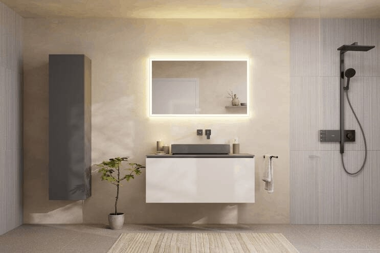 Ľad zrkadlo s dotykovým senzorom Hansgrohe Xarita E 120,6x70,6 cm biela matná 54985700