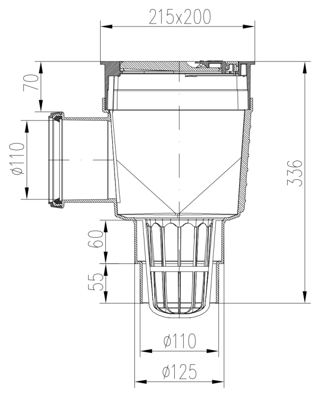Lapač strešných splavenín so zadným prítokom D110, spodný odtok D110/125 CH 926