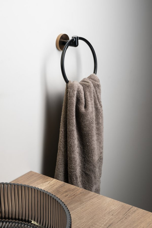 LARISSA držiak uterákov kruh, čierna/meď mat WS006BC