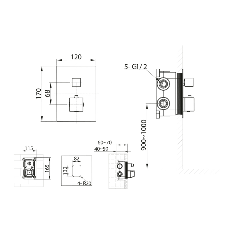 Vývod sprchy, hranatý, tenká krytka, chróm SG302