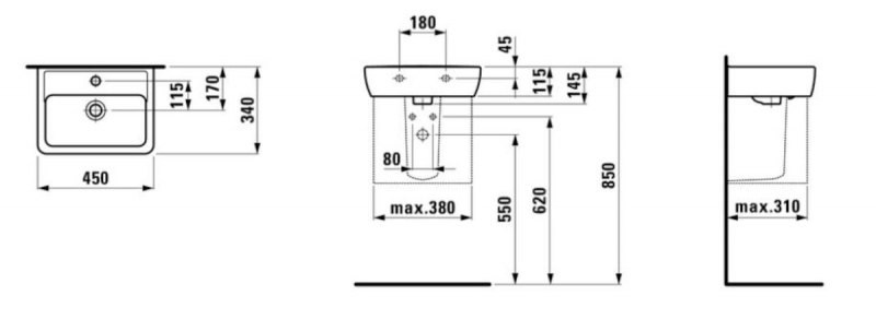 LAUFEN PRO A umyvátko bez otvoru 45x34 H8.1195.2.000.109.1