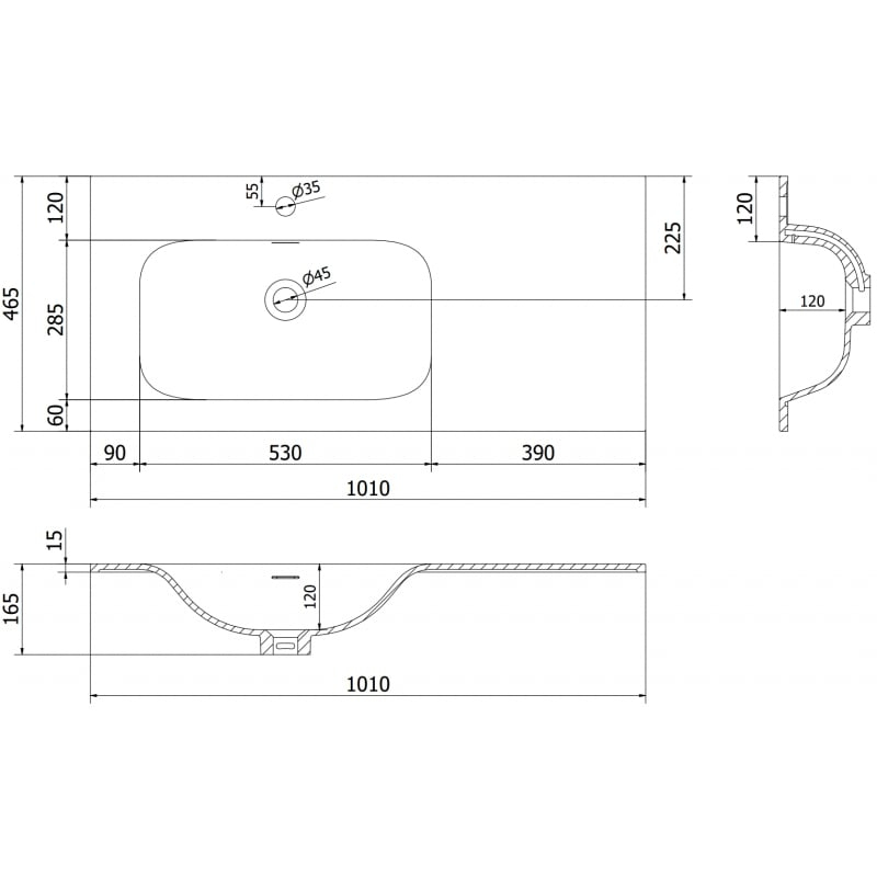 Špecifikácia produktu: Rozmer: 101x46, 5x16, 5 cm Hĺbka: 12 cm Typ: Zapustené, Ľavé Farba: Matná čierna Materiál: Konglomerát Otvor pre prepad: Áno Otvor pre kohútik: Áno