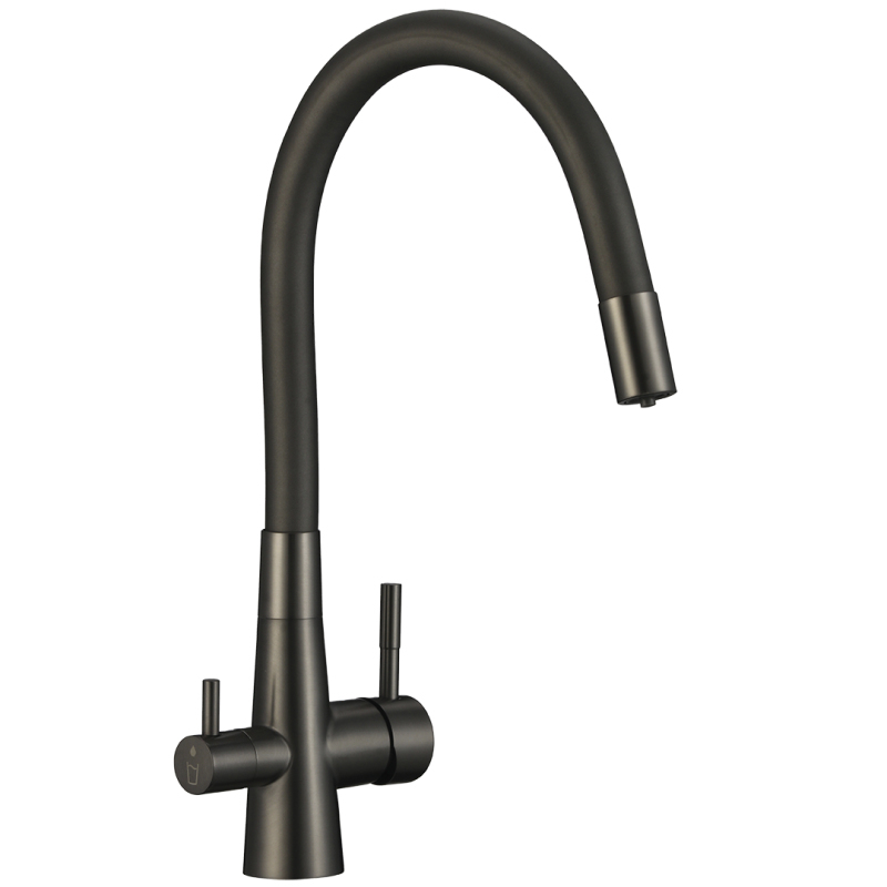 Vodovodné batérie Riveco vynikajú elegantnými, modernými povrchovými úpravami v kefovanej oceli, čiernej a grafitovej farbe, ktoré sa bez problémov hodia k rôznym dizajnom kuchýň. Tieto estetické a odolné povrchové úpravy nielen vylepšujú vzhľad kuchyne, ale taktiež zaručujú dlhodobý výkon, ľahkú údržbu a odolnosť proti poškodeniu.