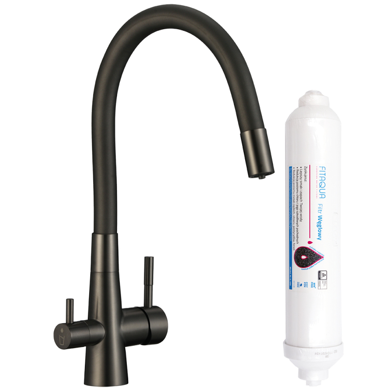 Laveo RIVECO kuchynská batéria s elastickým výtokom a filtračným systémom BRIB968D