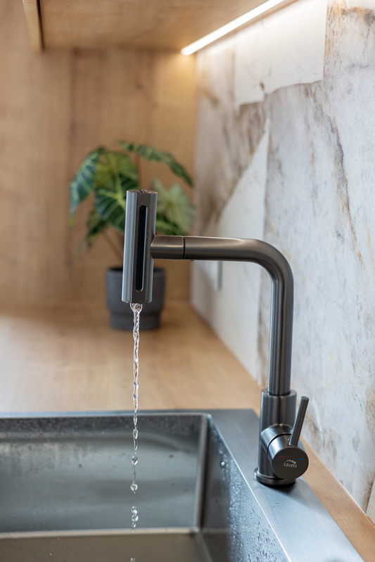 Laveo ROTARO stojanková drezová batéria s výsuvným multifunkčným výtokom BLR_769D