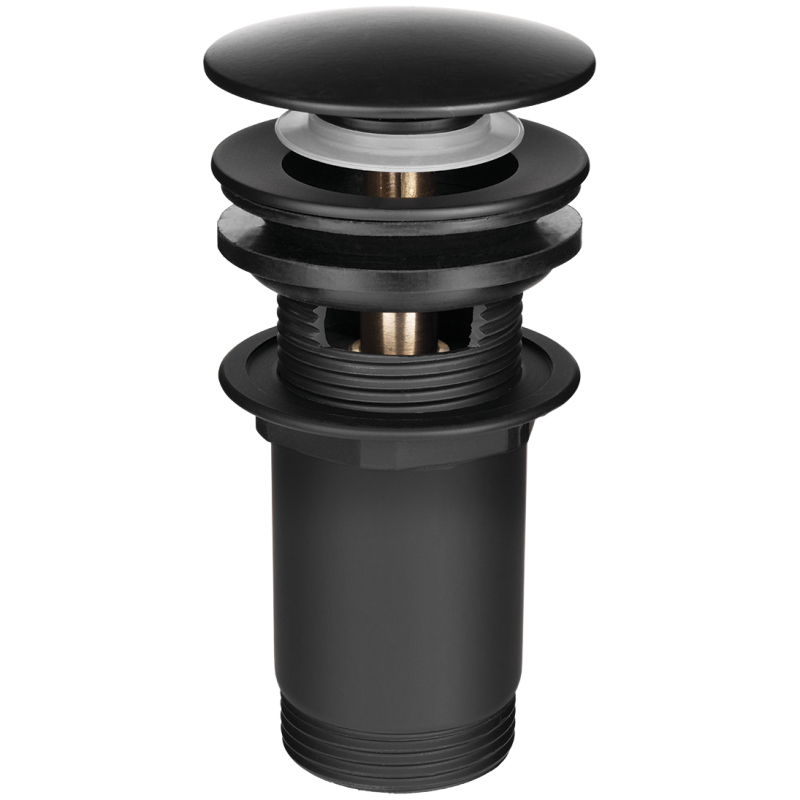 Vypouštěcí zátka s přepadem pro umyvadlo. Tento inovativní mechanismus umožňuje snadné otevírání a zavírání odpadu jednoduchým stisknutím, což eliminuje potřebu tradičního zátky.