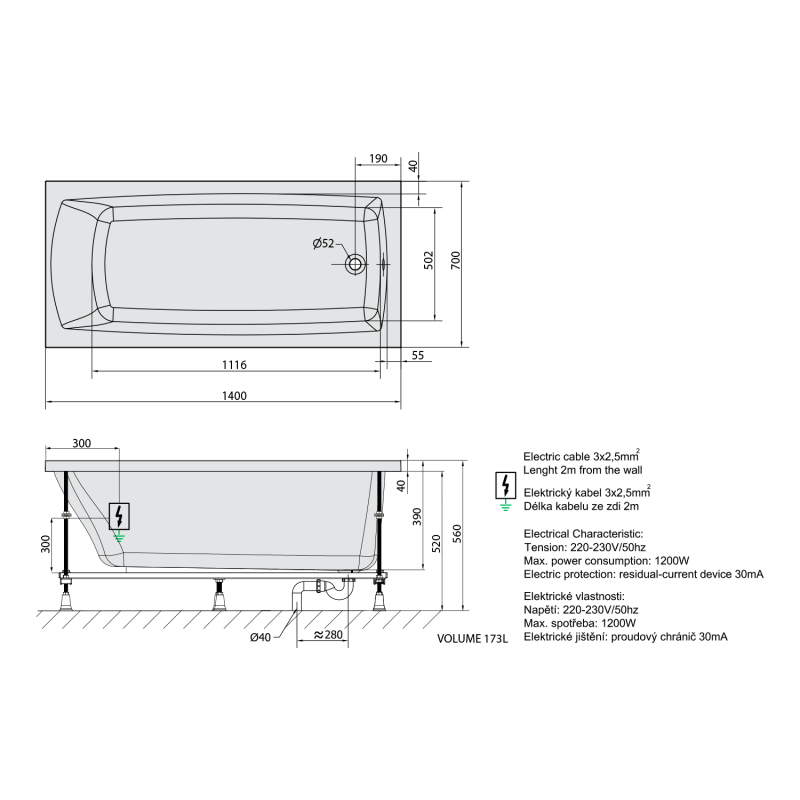 | Objem | 173.00 l |