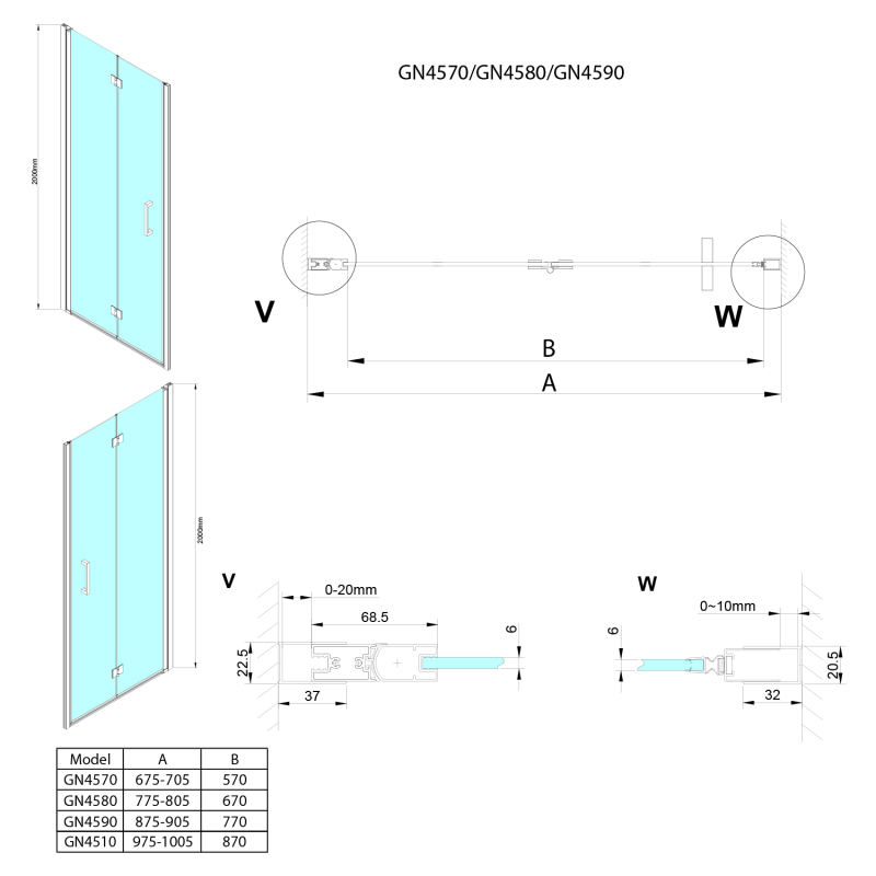 LORO sprchové dvere skladacie 1000mm, číre sklo