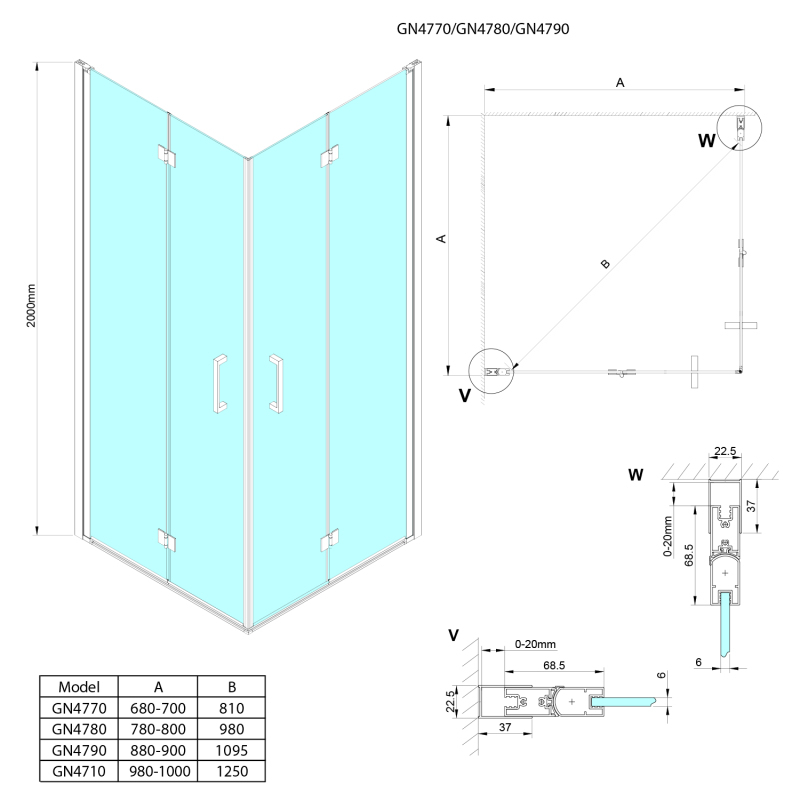 LORO sprchové dvere skladacie pre rohový vstup 1000mm, číre sklo