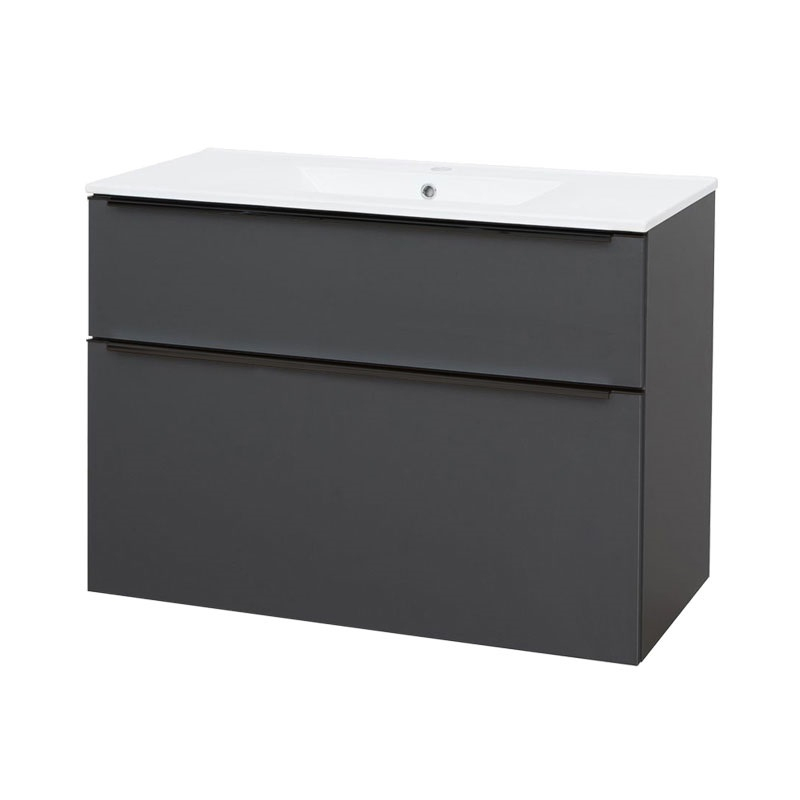 Mailo, kúpeľňová skrinka s keramickým umývadlom, 1010x720x476 mm, spodná, antracit, 2 zásuvky. Zobraziť viac
