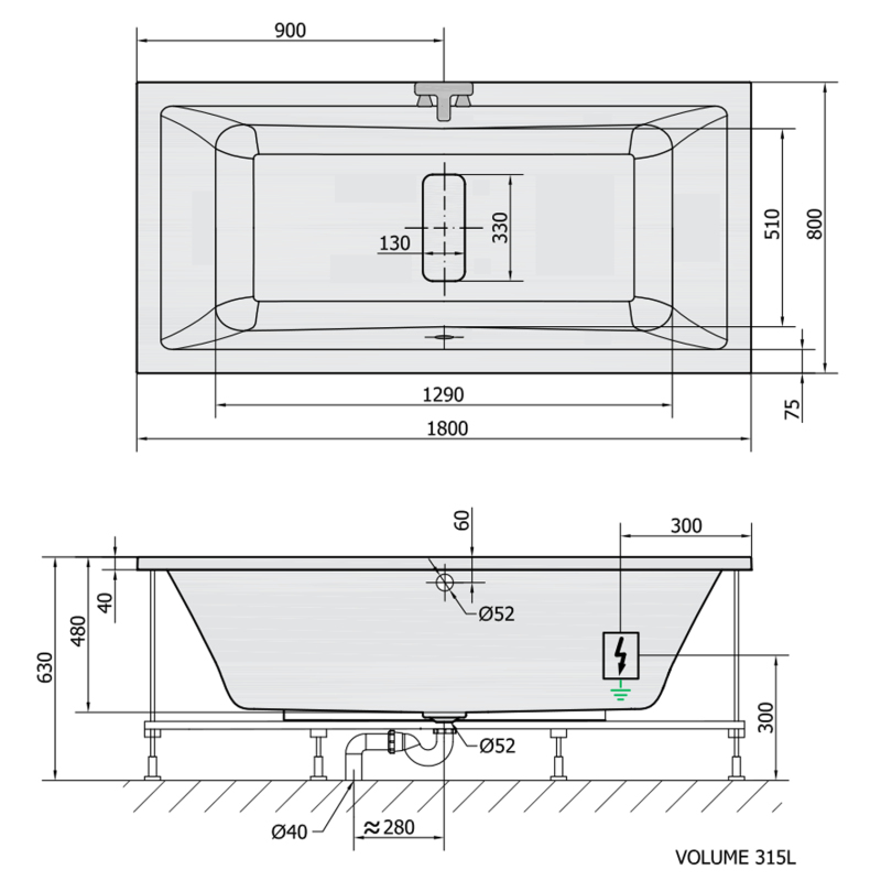 MARLENE hydromasážna vaňa, 180x80x48cm, Attraction Hydro, chróm 57084