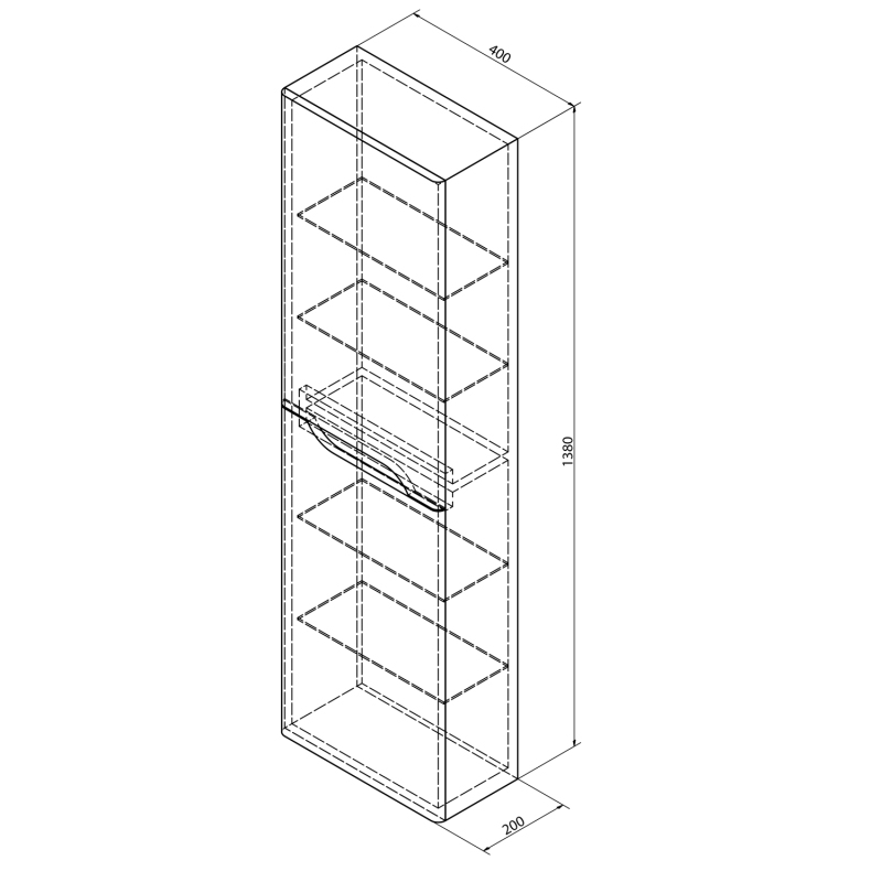 - Uvnitř 4 výškově nastavitelné skleněné police