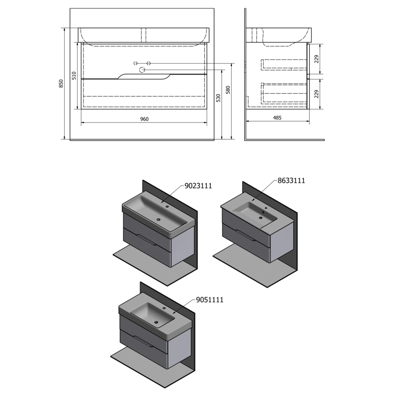 MEDIENA umývadlová skrinka 96,5x50,5x48,5cm, biela mat/dub graphite MD101