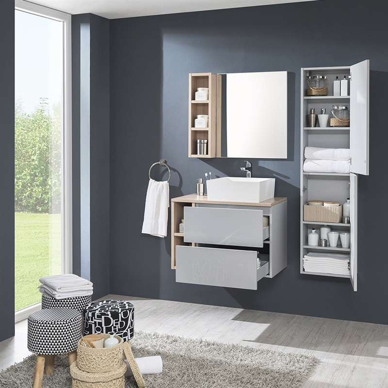 Aira, kúpeľňová skrinka s keramickým umývadlom 810x548x465 mm, spodná, biela lesk CN711