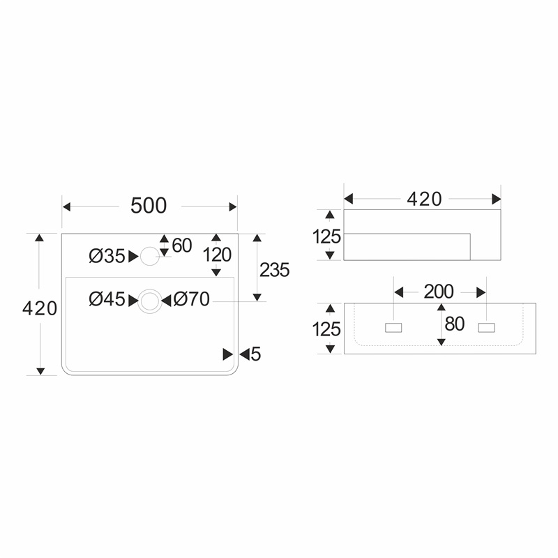 Mailo, kúpeľňová skrinka s umývadlom, 1010x720x476 mm, dub Riviera, čierne madlo CN522B