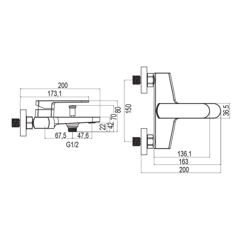 Mereo Mada vaňová batéria nástenná 150 mm bez príslušenstva CBQ90103M