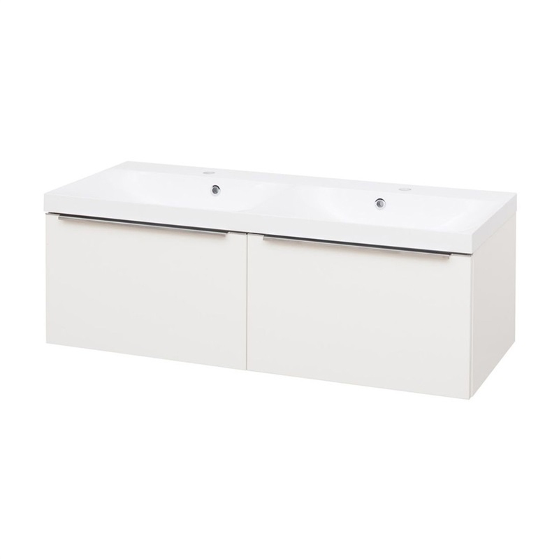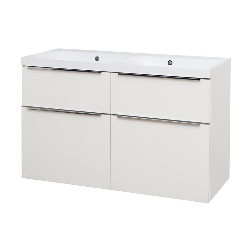 Mailo, kúpeľňová skrinka, umývadlo z liateho mramoru, 1210 mm, spodná, lesklá biela, 4 zásuvky. Možno kombinovať s keramickým umývadlom, príp. s kúpeľňovou doskou na skrinku alebo nábytkovým keramickým umývadlom. Zobraziť viac