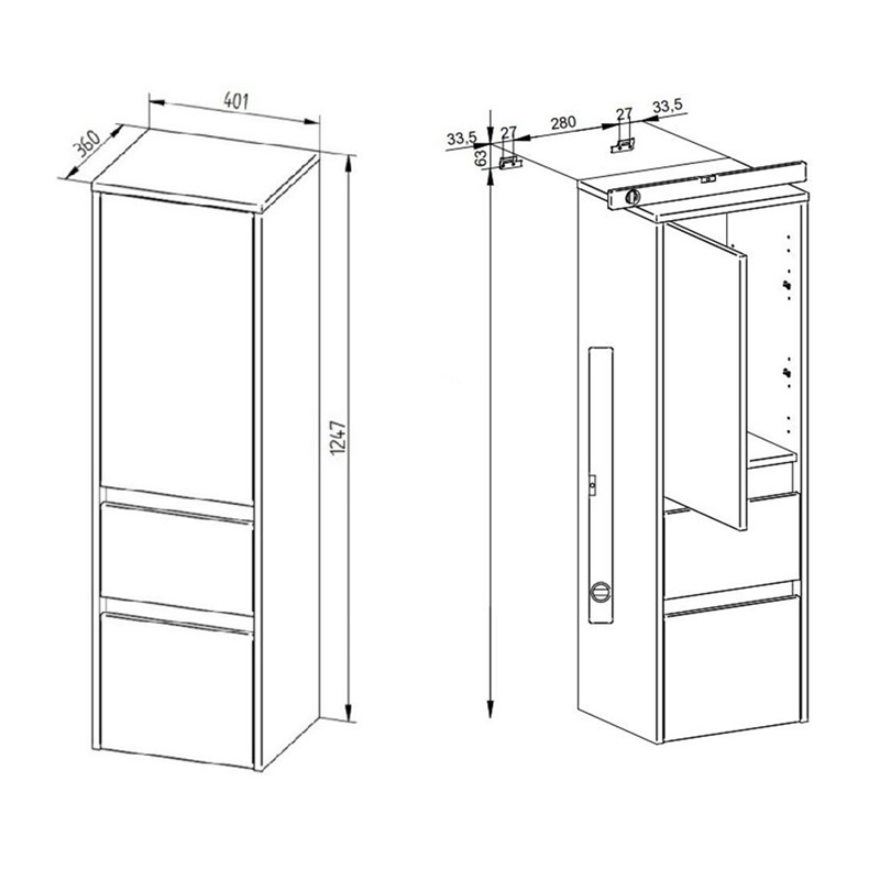 Opto, kúpeľňová skrinka, vysoká, závesná, dvierka a 2 zásuvky, ľavé otváranie, biela lesklá, 400x1250x360 mm. Zobraziť viac