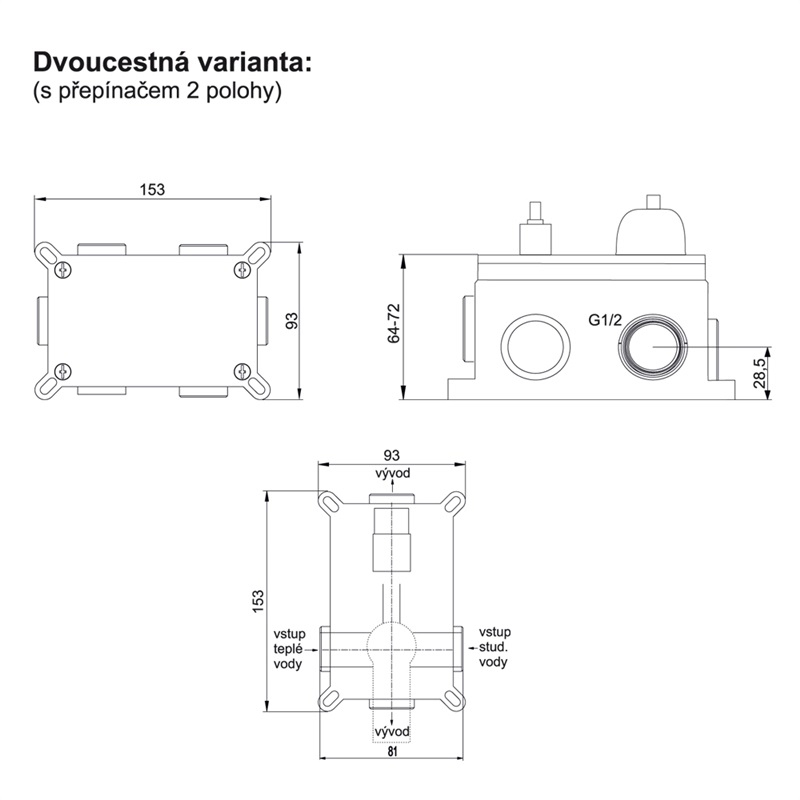 Dvojcestná podomietková batéria s keramickým prepínačom,