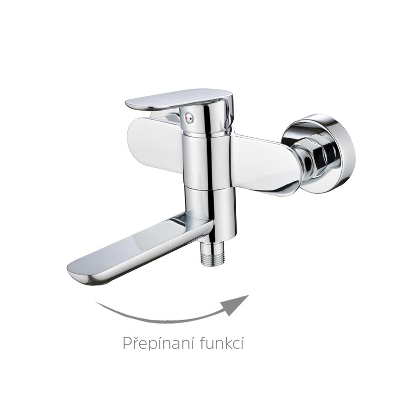 Elegantný spôsob prepínania medzi výtokom z ramienka a ručnou sprchou. Prepnutie funkcií sa realizuje otočením ramienka o 90° (otočenie ramienka k stene).