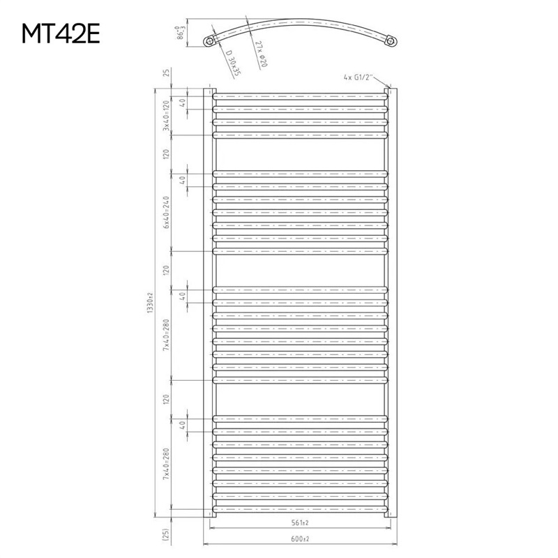 Typ:Vykurovací rebrík oblý, Oblý