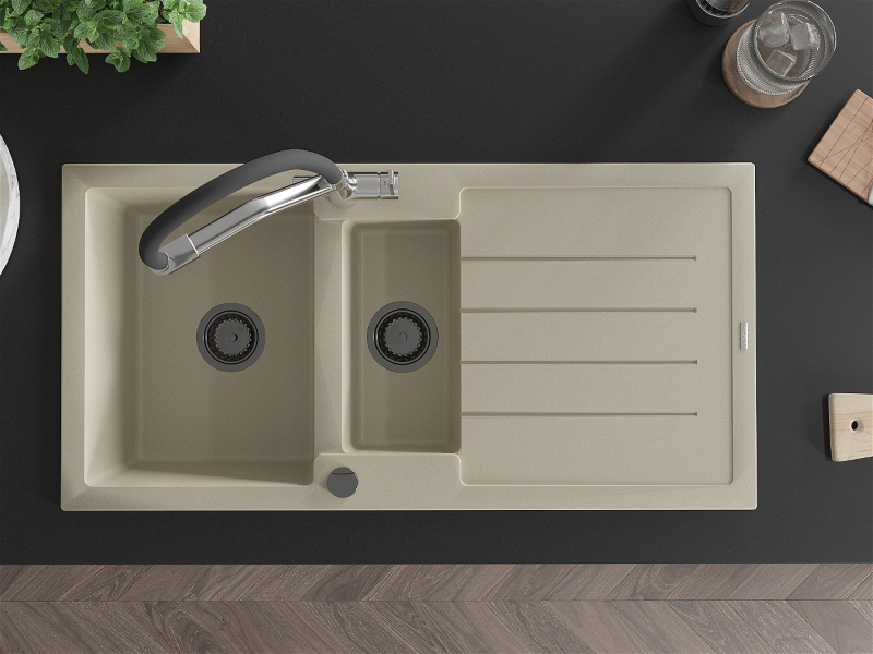 Mexen Andres 1,5 granit drez s odkvapom a batériou Duo, béžová 6515-69-671701-07-B