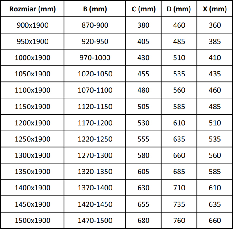 - Dvere (B min-max): 1140-1160 mm