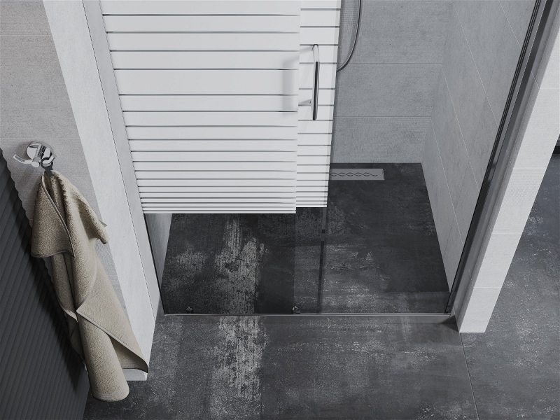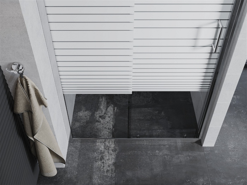 Sprchové dvere z kolekcie Mexen Apia. Funkčné posuvné dvere so spoľahlivými valčekmi, ktoré zaručujú hladký a tichý posuv. Povrchová úprava na skle uľahčuje ich čistenie, takže si môžete dlhšie užívať dokonale priehľadné a lesklé sklo.