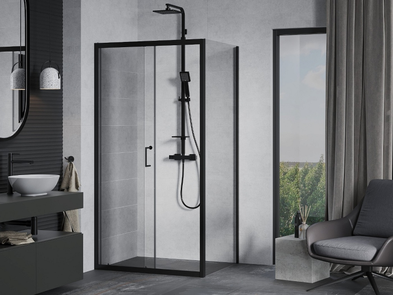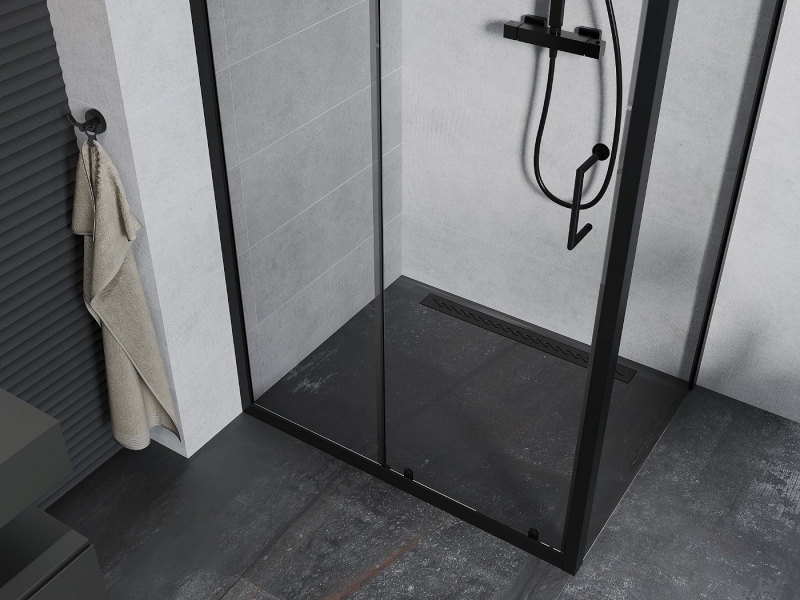 Mexen Apia výsuvná sprchová kabína 105 x 100 cm, priehľadná, čierna - 840-105-100-70-00