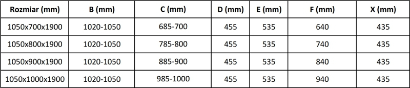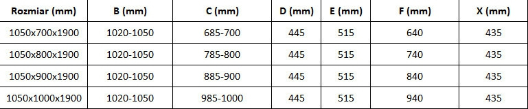 Rozmer: 105x100 cm (dvere 105 cm. stena 100 cm)