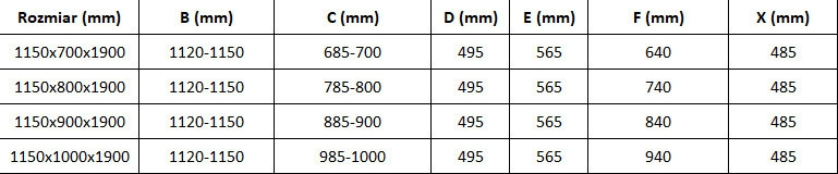 Rozmer: 115x90 cm (dvere 115 cm. stena 90 cm)