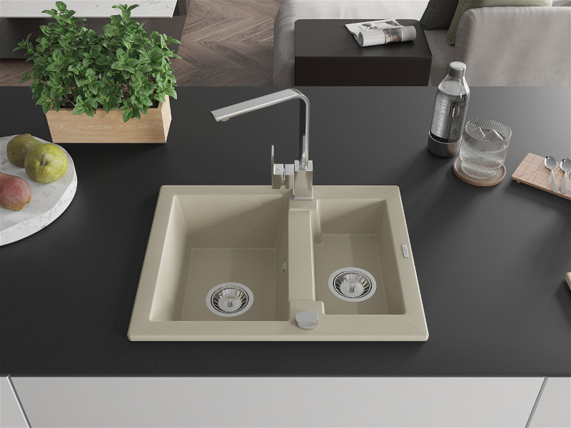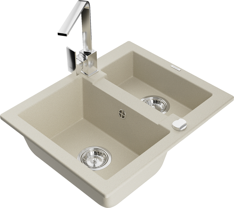 Mexen Carlos 1,5-miskový granitový drez s kuchynskou batériou Rita, béžová 6518-69-670300-00